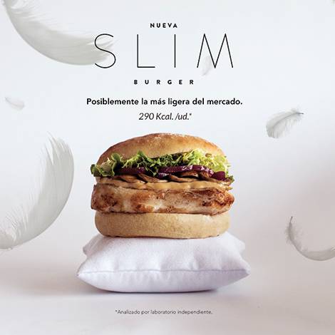 The Good Burger presenta Slim Burger, la hamburguesa más ligera del mercado. Compuesta de pechuga de pollo, lechuga, cebolla encurtida, mayonesa ahumada y pan de cristal, es la opción perfecta para cuidarse y disfrutar de una hamburguesa al mismo tiempo